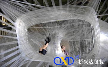 记得德国柏林有一场关于建筑艺术设计大赛,里面有来自世界各地的400多位设计师将他们的灵感和创意设计展示出来。下图为奥地利-克罗地亚创作团队“For Use/NuMEn”设计的作品——是由胶带创作的巨大立体空间。这个设计从外形看仿佛一个巨大规模的蜘蛛网,而亲历其中又仿佛是在晶莹透亮的蚕丝中穿行。难以想象这是用透明封箱胶制作而成的。